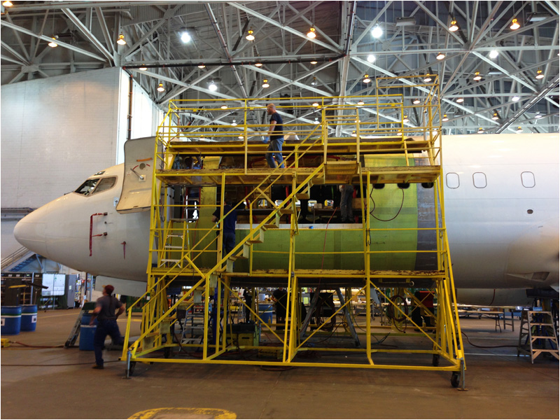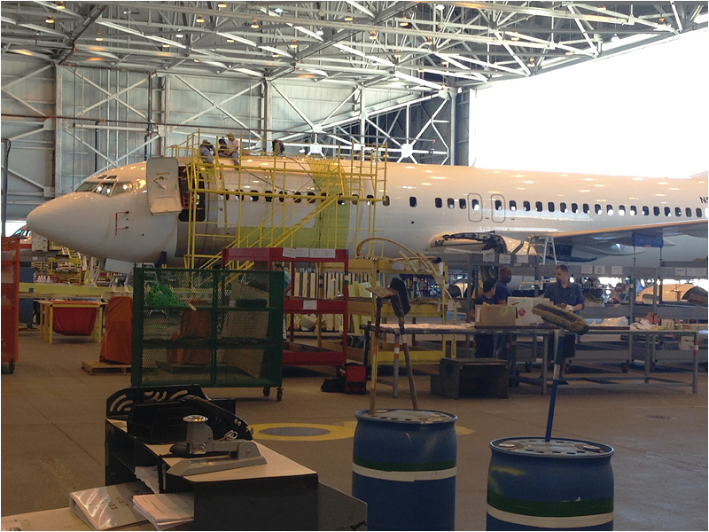 Aircraft being readied for cargo conversion and installation of PEMCO cargo door